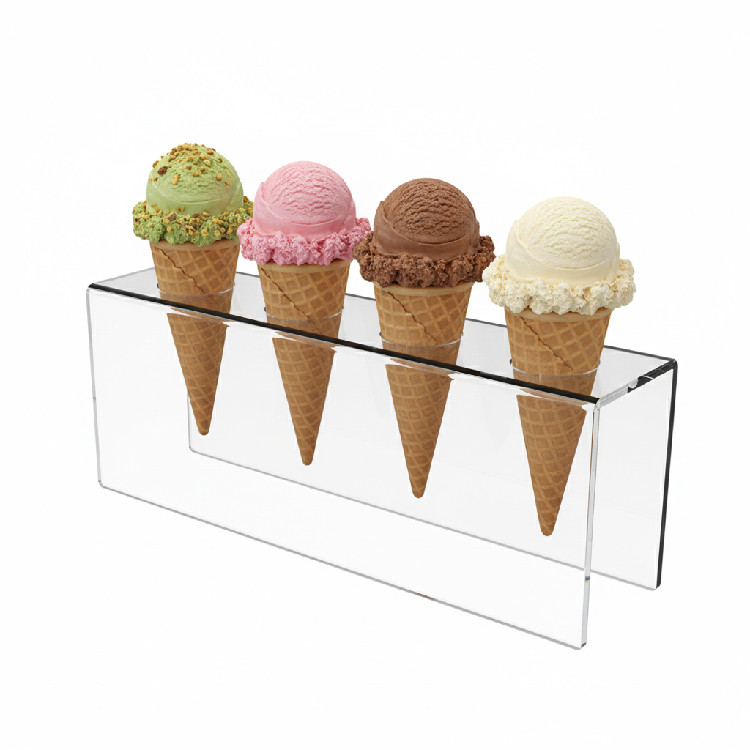 Підставка для морозива з оргскла є універсальною та підходить для різних видів морозива, включаючи ріжки, вафлі, стаканчики та багато іншого. Вона чудово поєднується з будь-яким інтер'єром та додає нотку розкоші до вашого столу.